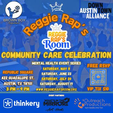 With our partners, Downtown Austin Alliance and Reggie Rap’s Room, Reggie Rap's Community Care Celebration series will feature a unique theme highlighting key aspects of mental health and wellness, including workshops, performances, and interactive activities for attendees of all ages.